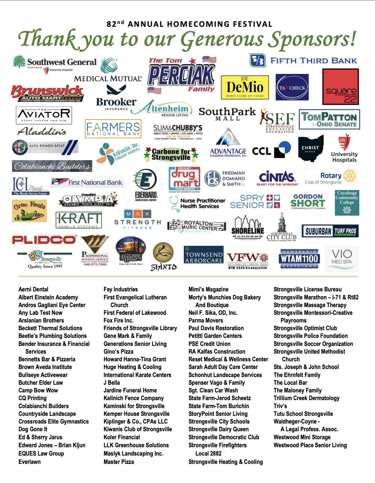 Perfect for all ages, this event celebrates Strongsville's rich heritage and community pride. Mark your calendars and bring your family and friends to create unforgettable memories at the Strongsville Homecoming!